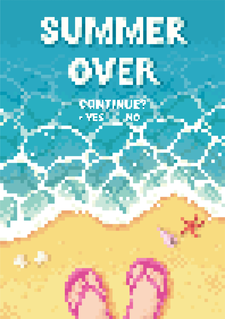 夏の海のイラストを制作しました。書いてある文字「SUMMER OVER」は